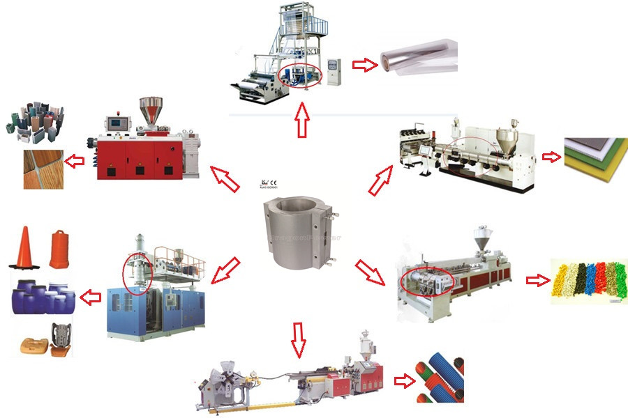 主要適用于擠壓和模鑄機械,在眾多機械行業(yè)應(yīng)用廣泛,操作溫度可達300℃(鋁),為了使熱量集中向一個工作面(發(fā)射面)方向發(fā)射,產(chǎn)品的其余幾個面用隔熱保溫材料覆蓋,具有工藝先進、保溫性強、使用壽命長等特點。普遍運用于塑料擠出機械、化纖機械、塑料吹膜機械等。