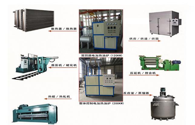 廣泛應(yīng)用高溫定型、板材加溫、橡膠、烘干、印染、化工、膠合板生產(chǎn)、防水卷材生產(chǎn)、瀝青加熱無(wú)紡布熱軋機(jī)、玻璃鋼熱壓機(jī)、反應(yīng)釜、模具、烘房、烘箱等各需熱行業(yè)。