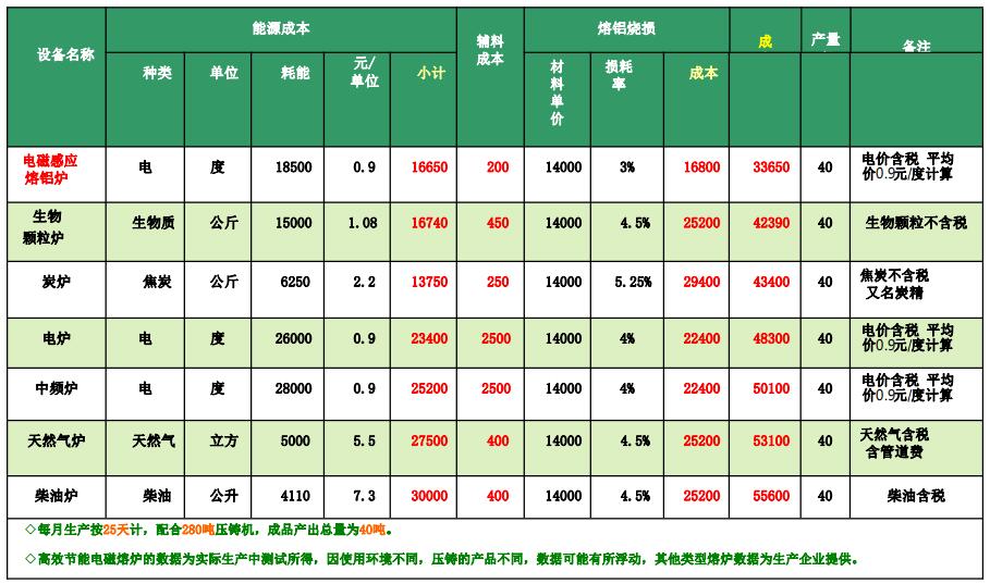 各類(lèi)型鋁合金熔爐綜合使用成本對(duì)比: