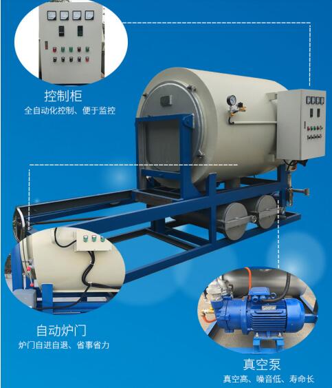 該設(shè)備利用高分子聚合物在300℃左右時可熔融,高于300℃時隔絕空氣可裂解焦化,高于400℃在有少量空氣并有一定真空度的環(huán)境中可氧化的特性,先將粘有高分子污物的工件加熱到300℃(根據(jù)工藝要求擬定),使工件上數(shù)量較多的高分子聚合物溶化后流淌到爐膛下部的收集容器內(nèi),然后再將爐溫升到400-500℃,同時打開真空泵,并通入少量新鮮空氣,使剩余的聚合物充分氧化,生成的二氧化碳,經(jīng)水噴淋后通過環(huán)式真空泵抽吸,和水一起排出爐外。